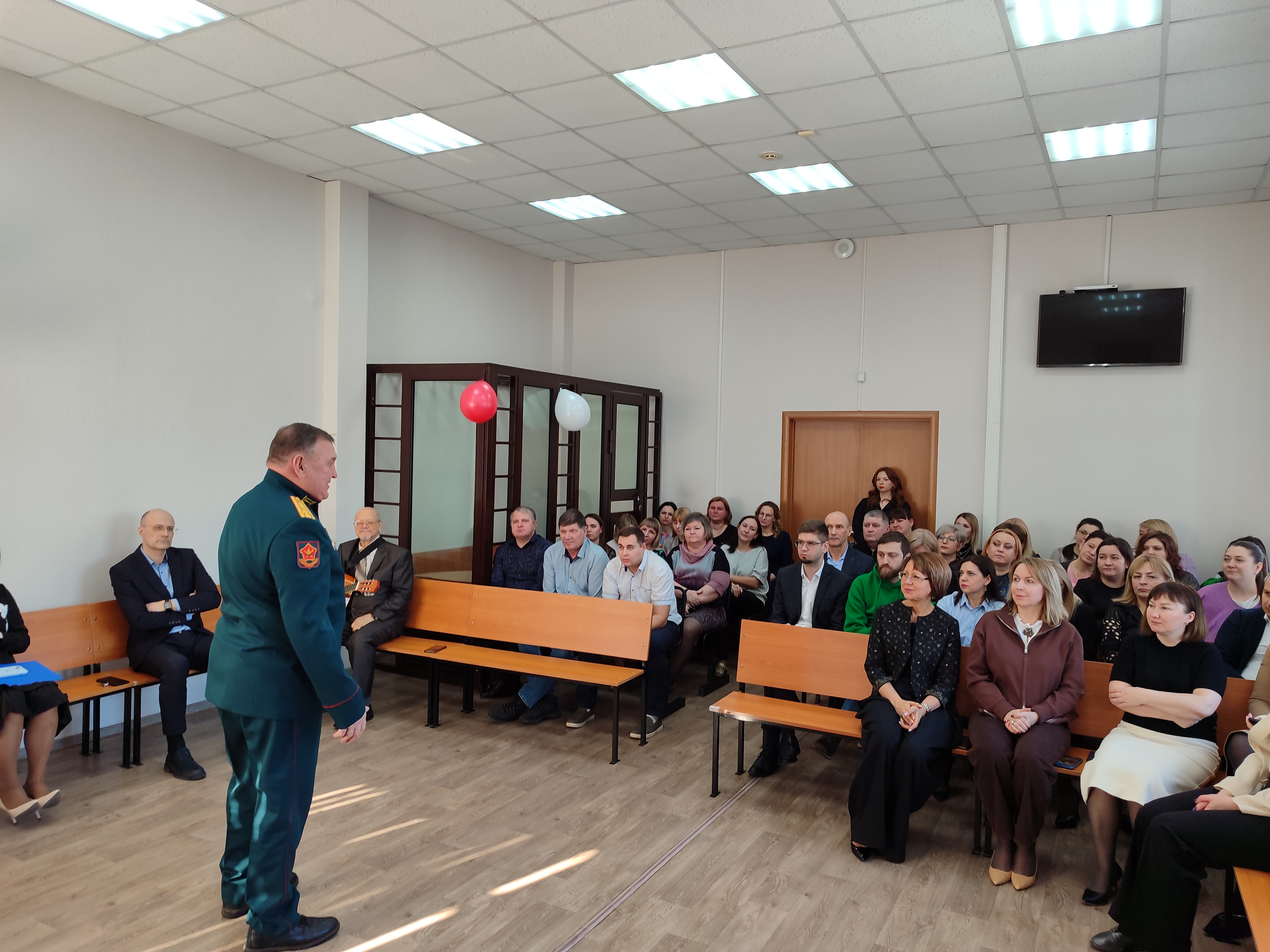 В рамках плана мероприятий посвященных 80-летию Победы в Великой Отечественной войне, а также в честь празднования Дня защитника Отечества в Октябрьском районном суде г. Липецка состоялась встреча с председателем Липецкого регионального отделения Общероссийской общественной организации ветеранов Вооруженных Сил Российской Федерации, членом Общественной палаты г. Липецка, полковником в отставке – Погореловым Александром Петровичем. Он поделился с судьями и сотрудниками суда впечатлениями от своей очередной поездки в зону специальной военной операции, рассказал о высоком моральном духе и боевом настрое наших бойцов, выразил благодарность всем, кто оказывает помощь и поддержку в это трудное время.