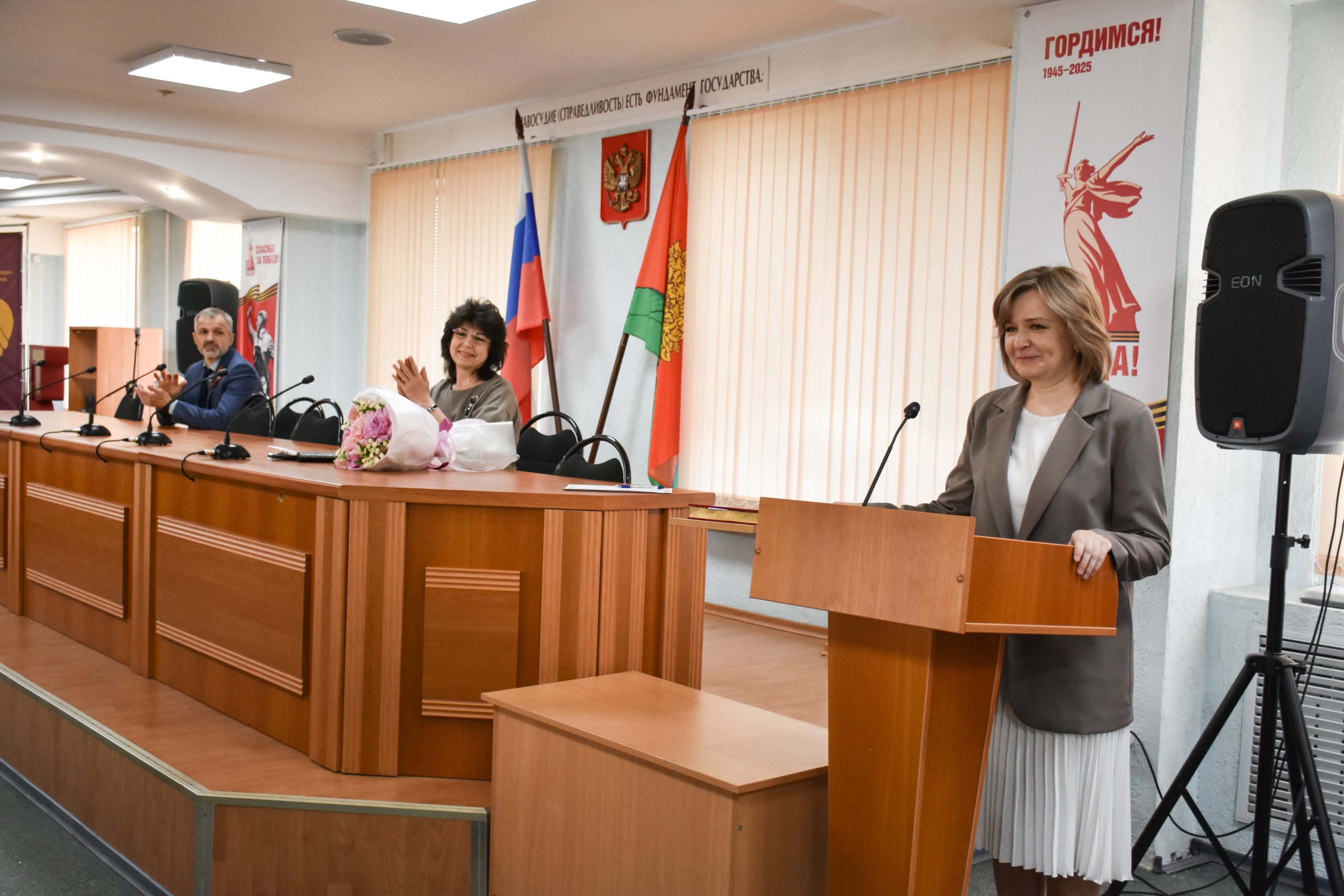 | 22 апреля 2025 года в Липецком областном суде в торжественной обстановке приняла присягу Ирина Дудкина, назначенная на должность мирового судьи судебного участка №6 Октябрьского судебного района города Липецка на трехлетний срок полномочий. Решение об утверждении ее кандидатуры ранее принято в ходе 48-ой сессии Липецкого областного Совета депутатов. Ирина Леонидовна окончила юридический факультет Липецкого государственного технического университета в 2003 году. С 2004 по 2012 год работала на разных должностях в Правобережном районном суде города Липецка. С февраля 2012 года являлась помощником судьи Липецкого областного суда. Стаж работы в юридической сфере – более 20 лет. ![]() |